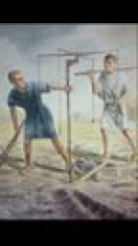 nachgebaut nach einer Abbildung im römischen Nationalmuseum. Das Gerät wurde mit einer Eichhypothenuse gebaut, die eine Kontrolle des rechten Winkels ermöglicht. Es gibt dazu keine Vorlage, diese